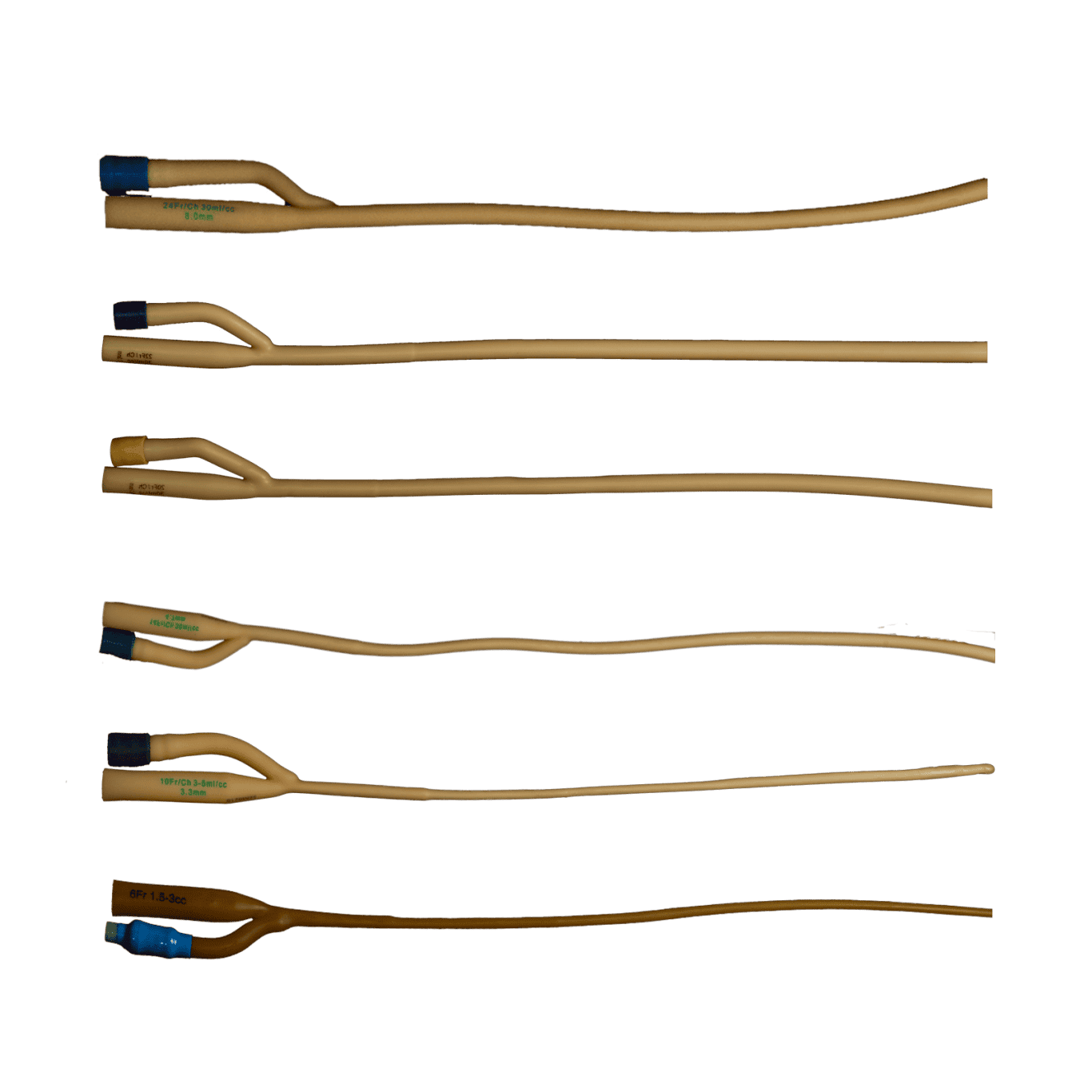 Sondele Foley cu 2 căi, esențiale pentru gestionarea corectă a sondelor vezicale. Acestea includ un circuit adițional pentru umflarea balonului, asigurând fixarea corectă și sigură a sondei. Sunt fabricate din latex natural și silicon medical pentru elasticitate și confort. Sondele sunt prevăzute cu orificii pentru drenajul urinar și adaptabile la diverse pungi de urină și urometre. Disponibile în mai multe dimensiuni, fiecare cu un cod de culoare specific.